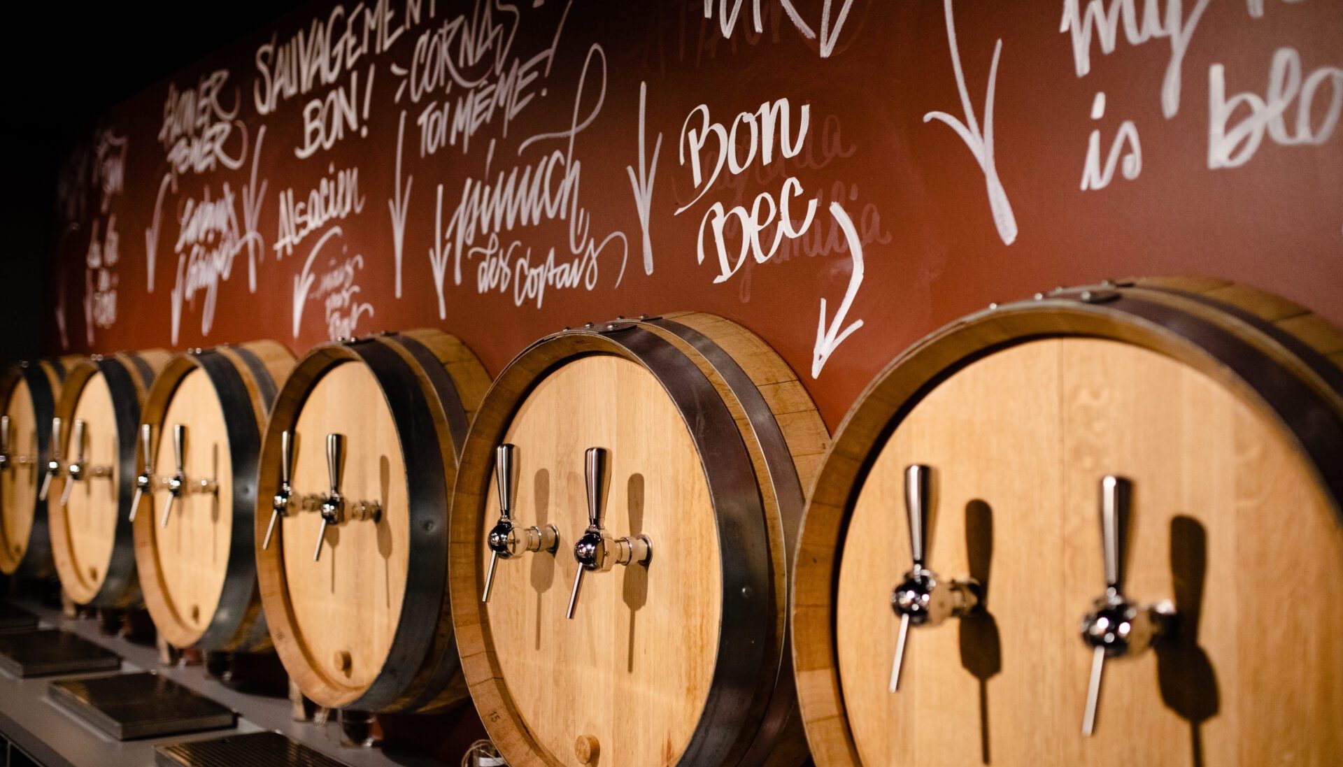 Bières locales à la tireuse et boissons non alcoolisées, néanmoins originales, accompagnent la sélection de vins.